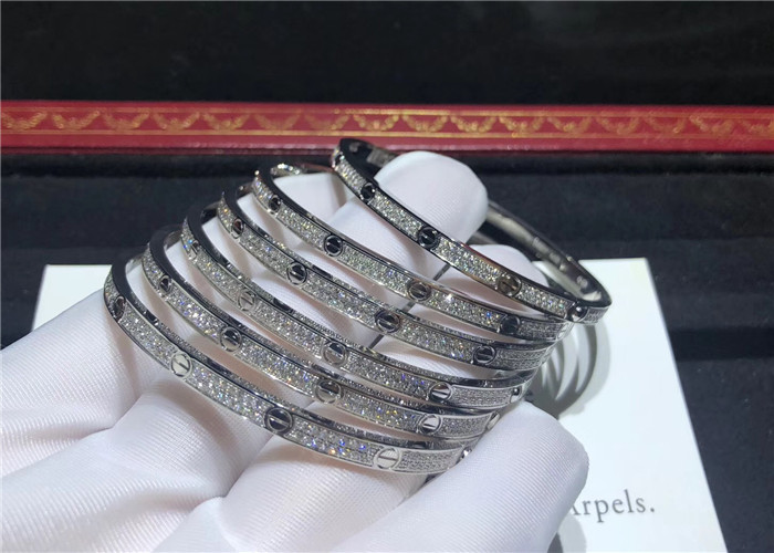 소형 금 브랜드 러브 팔찌, 18K 흰 금, 총 0.95카라트의 177개의 반짝이는 다이아몬드 세트